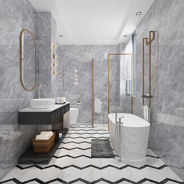 Bathroom Tiles Walls And Floors Marble Self Adhesive Vinyl PVC Wall Tiles